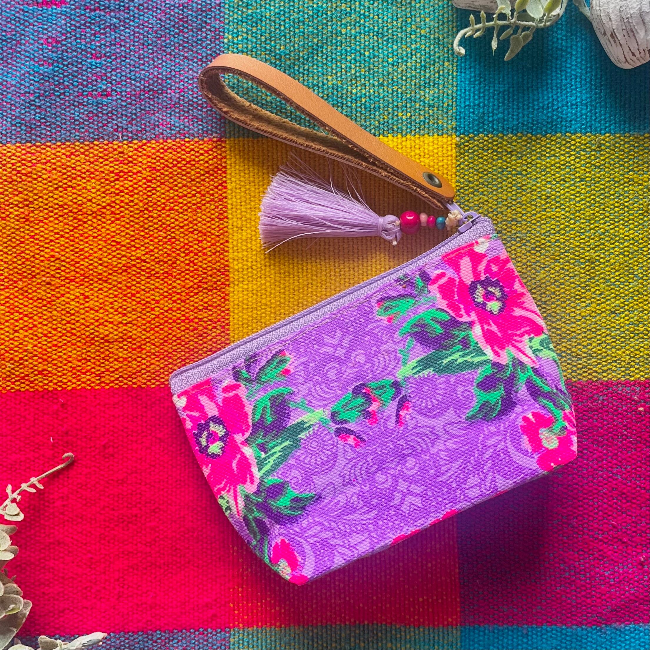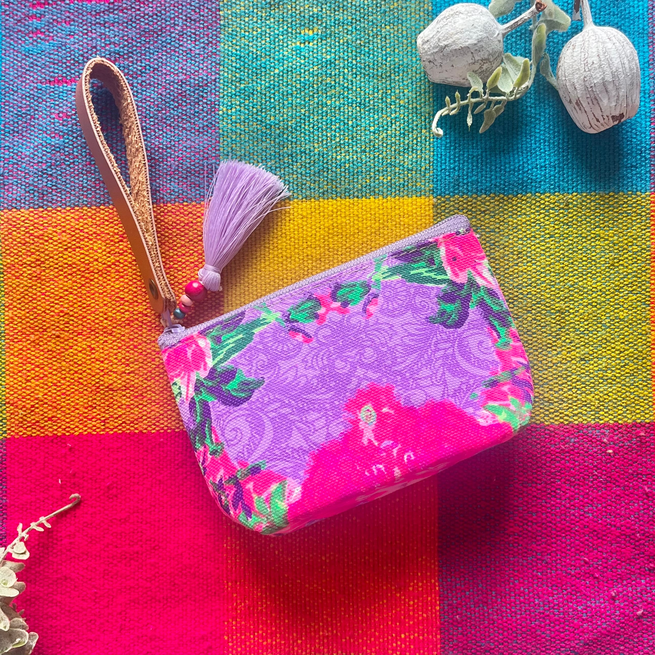 コスメポーチミニマム❤️ラベンダーネオンピンクフラワー×ラベンダータッセル
